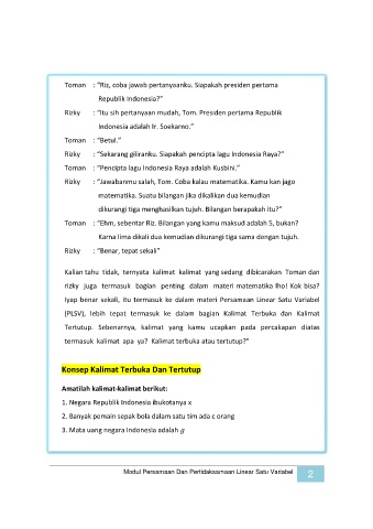 Rizky    : “Itu sih pertanyaan mudah, Tom. Presiden pertama Republik
