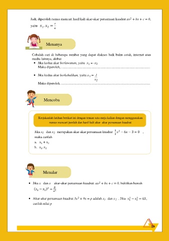 Jika x dan x merupakan akar-akar persamaan kuadrat ,