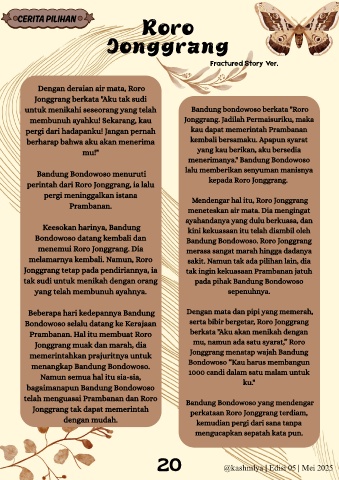 Jonggrang muak dan marah, dia mu, namun ada satu syarat,” Roro