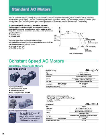 directly to an AC power supply. A standard AC motor supports various applications including high torque output, stopping or variable speeds.