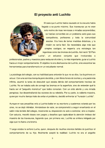 profesionales, padres y maestros para restaurar el orden y, lo más importante, guiar a Luchito