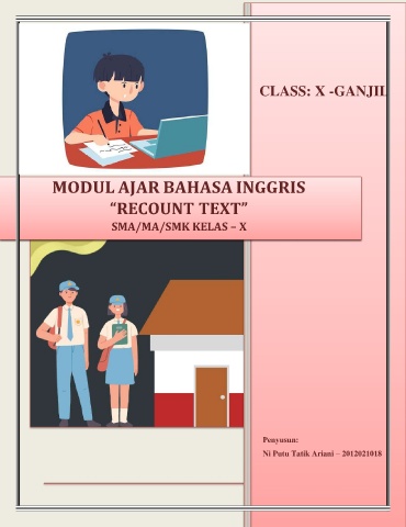 Kelas X – R BAHASA INGGRIS Ganjil CLASS: X -GANJIL MODUL AJAR BAHASA INGGRIS “RECOUNT TEXT” SMA/MA/SMK KELAS – X Penyusun: Ni Putu Tatik Ariani – 2012021018 2