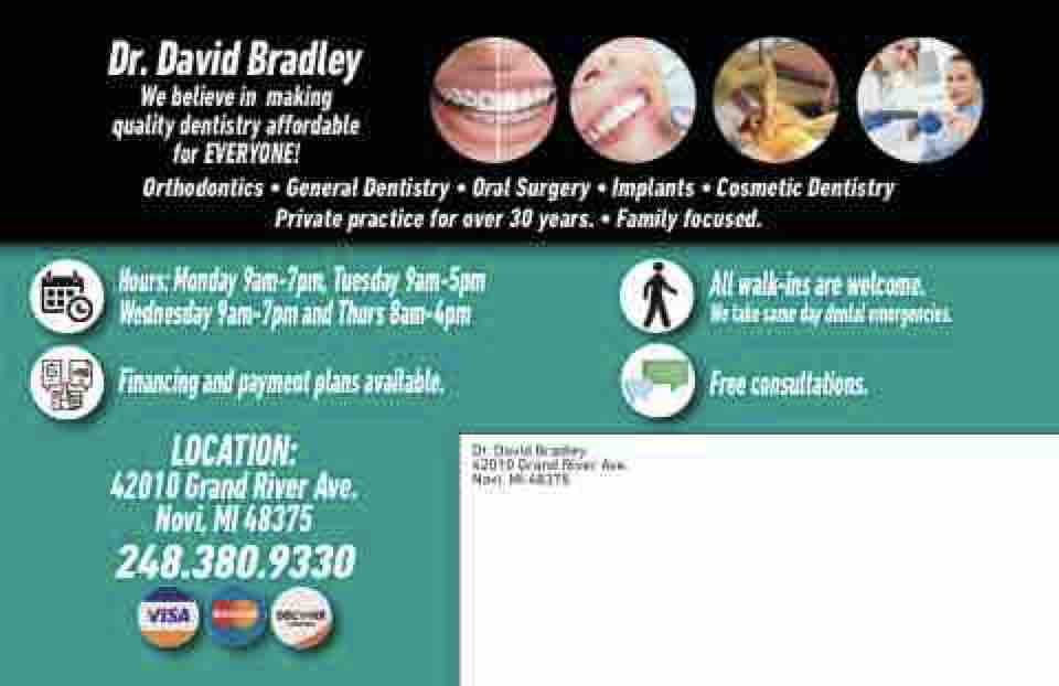 Dr. David Bradley 42010 Grand River Ave. Novi, MI 48375