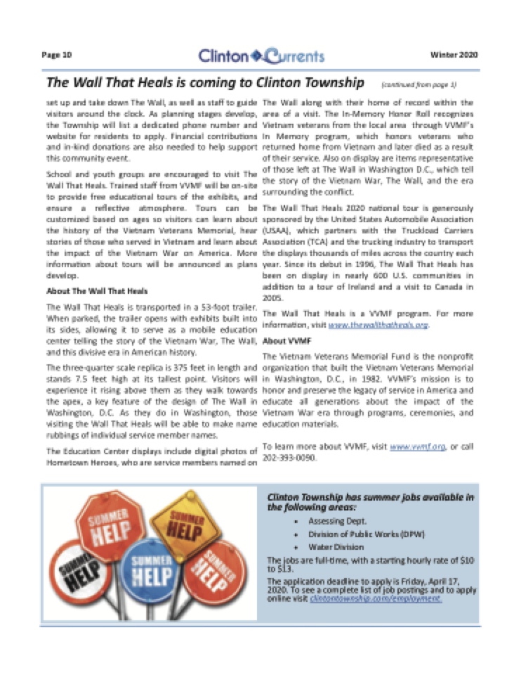 The Wall That Heals is coming to Clinton Township (con nued from page 1)