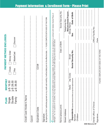 Complete the form below to secure the most affordable dental coverage available. By signing this form you are agreeing to a contract with Golden Dental Plans of Michigan Inc. for a period of 12 months. You may cancel this contract within 72 hours after signing and receive a full refund.
