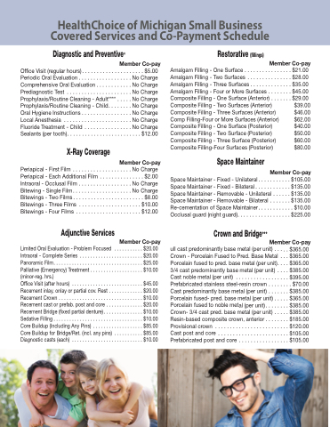 HealthChoice of Michigan Small Business Covered Services and Co-Payment Schedule