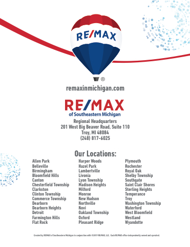 Created by RE/MAX of Southeastern Michigan in conjunction with ©2019 RE/MAX, LLC. Each RE/MAX office independently owned and operated.
