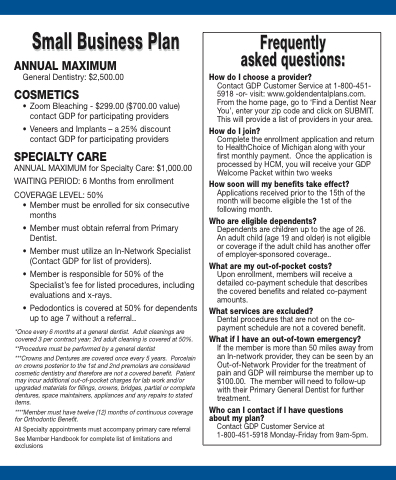 Complete the enrollment application and return to HealthChoice of Michigan along with your first monthly payment. Once the application is processed by HCM, you will receive your GDP Welcome Packet within two weeks