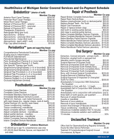 HealthChoice of Michigan Senior Covered Services and Co-Payment Schedule