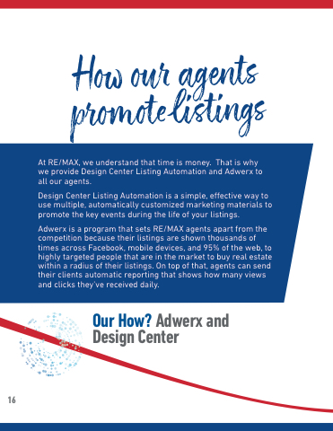 At RE/MAX, we understand that time is money. That is why we provide Design Center Listing Automation and Adwerx to all our agents.