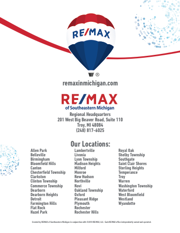 Created by RE/MAX of Southeastern Michigan in conjunction with ©2018 RE/MAX, LLC. Each RE/MAX office independently owned and operated.