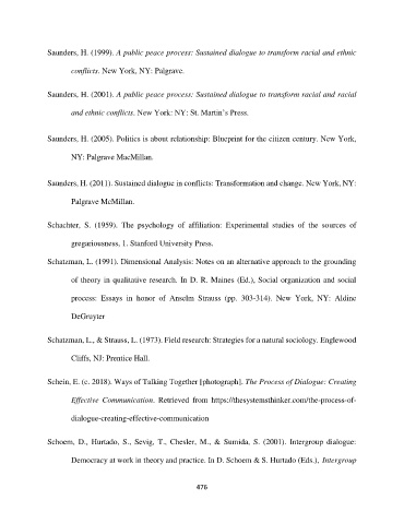 Saunders, H. (2011). Sustained dialogue in conflicts: Transformation and change. New York, NY: