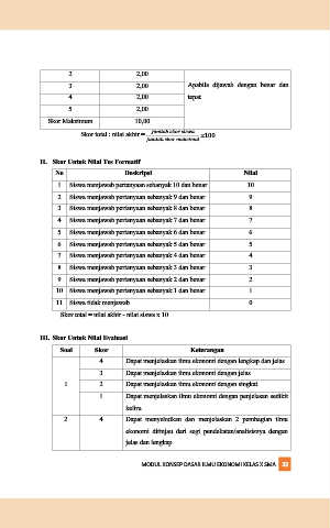 II.  Skor Untuk Nilai Tes Formatif