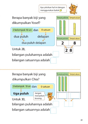 Berapa banyak biji yang Tempat puluhan Tempat satuan