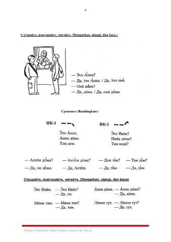 9 Слушайте, повторяйте, читайте. (Dengarkan, ulangi, dan baca.) Сравните (Bandingkan): Слушайте, повторяйте, читайте. (Dengarkan, ulangi, dan baca) Hanjar Pelatihan Teknis Bahasa Rusia Tk. Dasar