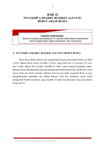 (cyrilic). Bahasa Rusia modern memiliki 33 huruf, yang terdiri atas 21 konsonan, 10 vokal,