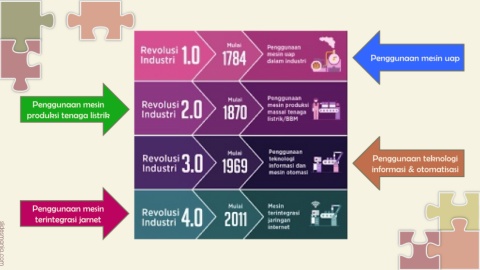 Penggunaan mesin uap Penggunaan mesin produksi tenaga listrik Penggunaan teknologi informasi & otomatisasi Penggunaan mesin terintegrasi jarnet