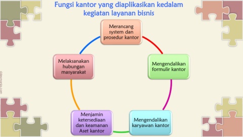 Fungsi kantor yang diaplikasikan kedalam kegiatan layanan bisnis Merancang system dan prosedur kantor Melaksanakan hubungan Mengendalikan masyarakat formulir kantor Menjamin ketersediaan Mengendalikan dan keamanan karyawan kantor Aset kantor