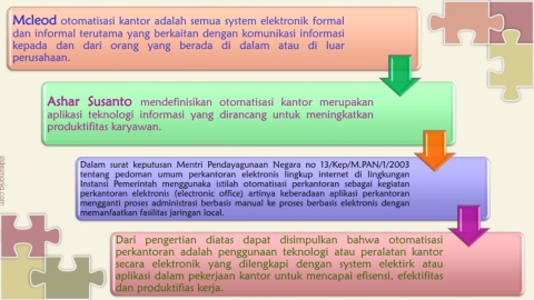 Ashar Susanto mendefinisikan otomatisasi kantor merupakan