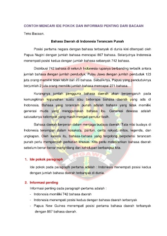CONTOH MENCARI IDE POKOK DAN INFORMASI PENTING DARI BACAAN