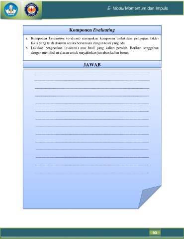 a. Komponen Evaluating (evaluasi) merupakan komponen melakukan pengujian fakta-