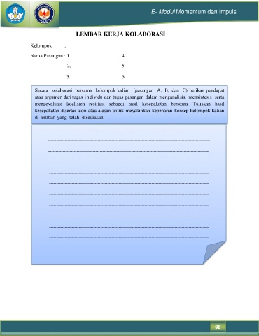 mengevaluasi koefisien restitusi sebagai hasil kesepakatan bersama. Tuliskan hasil