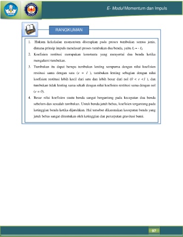 2. Koefisien restitusi merupakan konstanta yang menyertai dua benda ketika