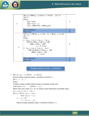 Massa bola sama maka, m 1 = m 2 =m dengan rumus kekekalan momentum maka,