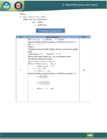 Massa bola sama maka, m 1 = m 2 =m dengan rumus