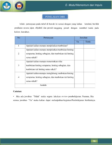 • Jika ada jawaban "Tidak" maka segera lakukan review pembelajaran. Namun, Jika