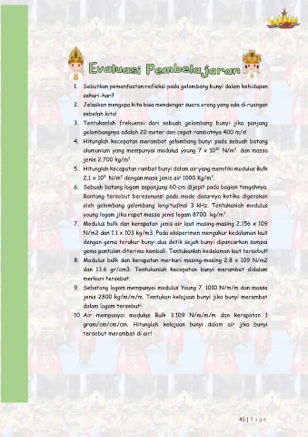 5. Hitunglah kecepatan rambat bunyi dalam air yang memiliki modulus Bulk