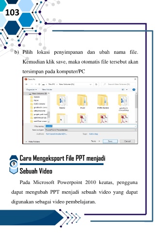 b) Pilih lokasi penyimpanan dan ubah nama file.