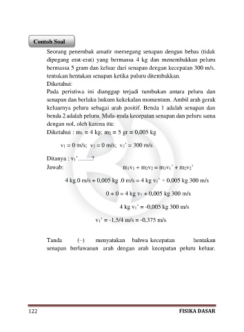 keluarnya peluru sebagai arah positif. Benda 1 adalah senapan dan