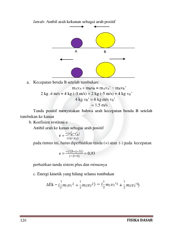 Tanda positif menyatakan bahwa arah kecepatan benda B setelah