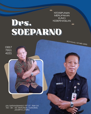 KEDISIPLINAN MERUPAKAN Drs. KEBERHASILAN KUNCI Drs. Drs. SOEPARNO SOEPARNO SOEPARNO 0817 BOYOLALI, 02 MEI 1965 7911 4221 JLN. SARANGBANGO RT 07 / RW 04 NO : 38 - 39, MARUNDA, CILINCING, JAKARTA UTARA