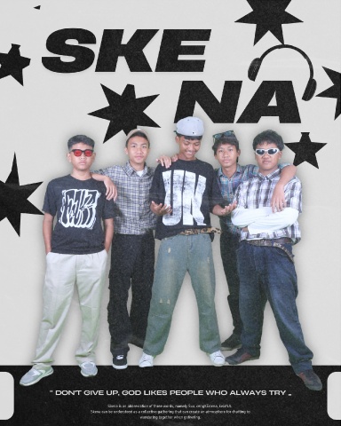 Skena is an abbreviation of three words, namely Sua, cengKErama, kelaNA. Skena can be understood as a collective gathering that can create an atmosphere for chatting to wandering together when gathering.