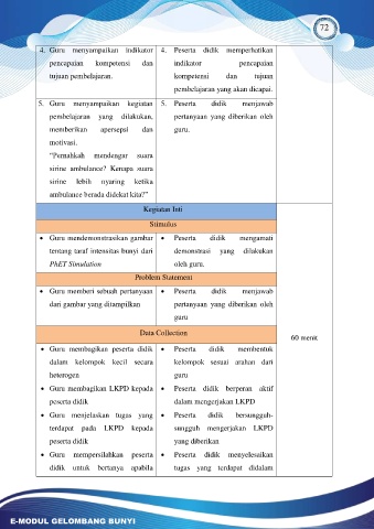 4. Guru menyampaikan indikator 4. Peserta didik memperhatikan