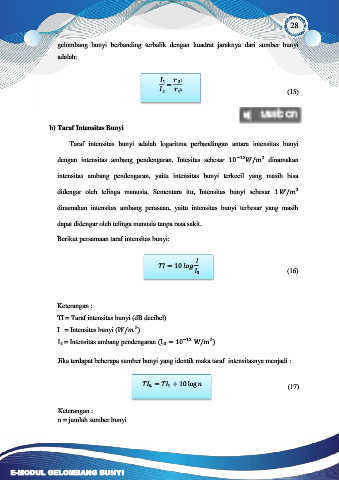 b) Taraf Intensitas Bunyi