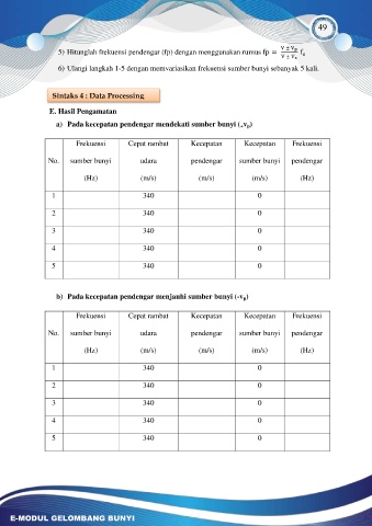 6) Ulangi langkah 1-5 dengan memvariasikan frekuensi sumber bunyi sebanyak 5 kali.