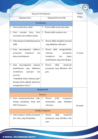 5. Guru menyampaikan kegiatan 5. Peserta didik menjawab
