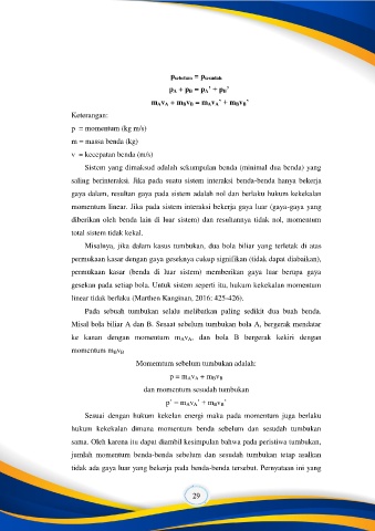 gesekan pada setiap bola. Untuk sistem seperti itu, hukum kekekalan momentum