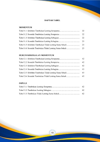 Tabel 1.1: Sebelum Tumbukan Lenting Sempurna........................................ 22