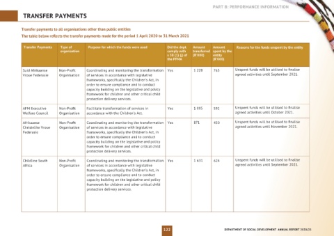 122 DEPARTMENT OF SOCIAL DEVELOPMENT ANNUAL REPORT 2020/21