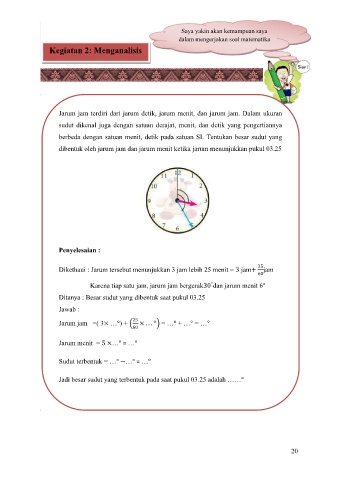 Jarum jam =( 3× …°) + 25 × . . . ° = …° + …° = …°