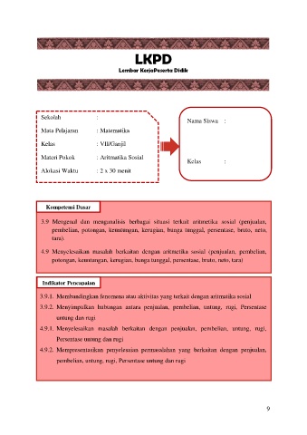 3.9 Mengenal dan menganalisis berbagai situasi terkait aritmetika sosial (penjualan,