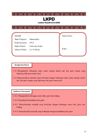 3.10 Menganalisis hubungan antar sudut sebagai akibat dari dua garis sejajar yang