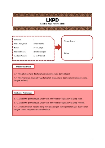 4.7.1. Menyelesaikan masalah yang berikatan dengan rasio (perbandingan) dua besaran