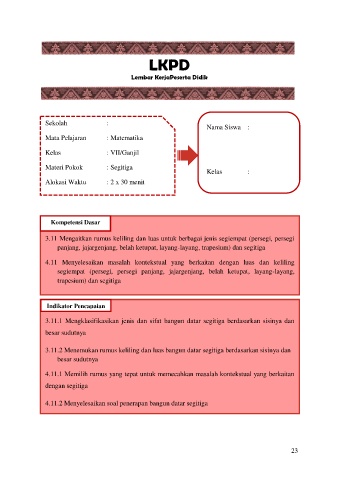 panjang, jajargenjang, belah ketupat, layang-layang, trapesium) dan segitiga