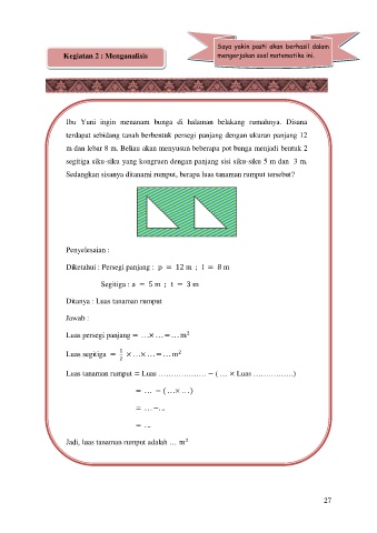 Kegiatan 2 : Menganalisis mengerjakan soal matematika ini.