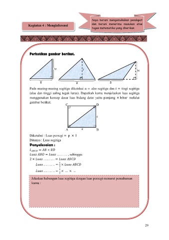 (alas dan tinggi saling tegak lurus). Dapatkah kamu menjelaskan luas segitiga
